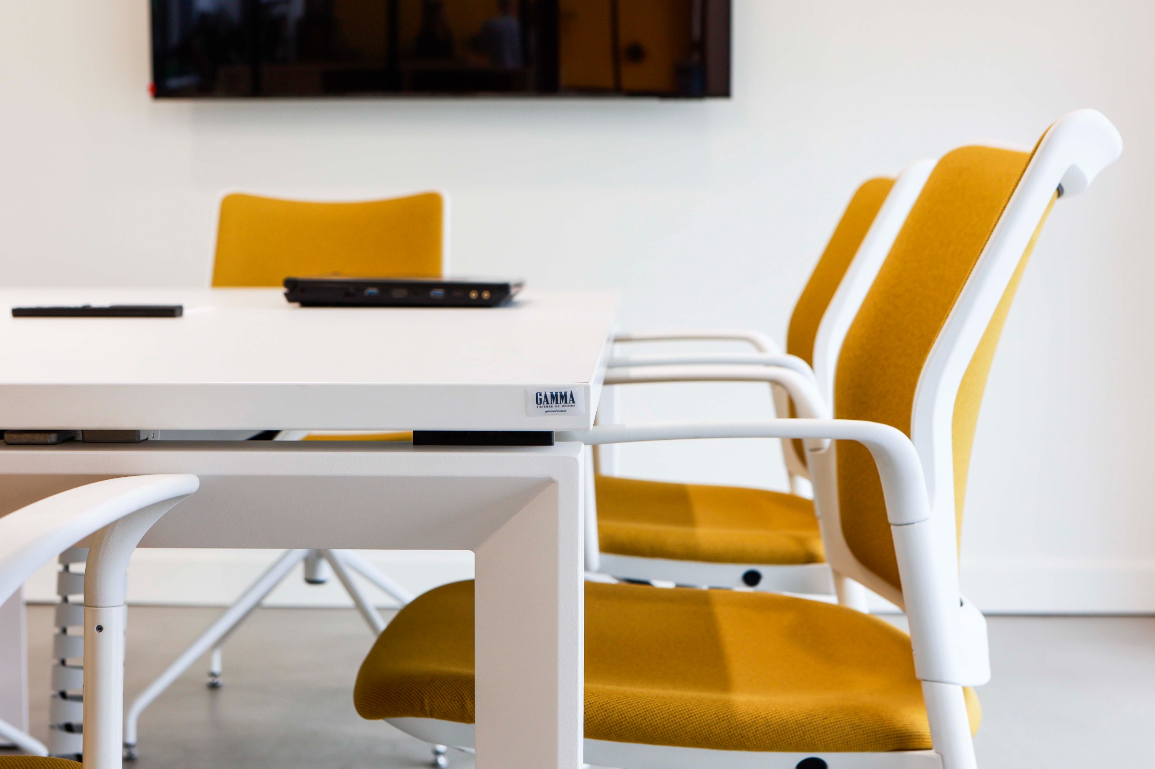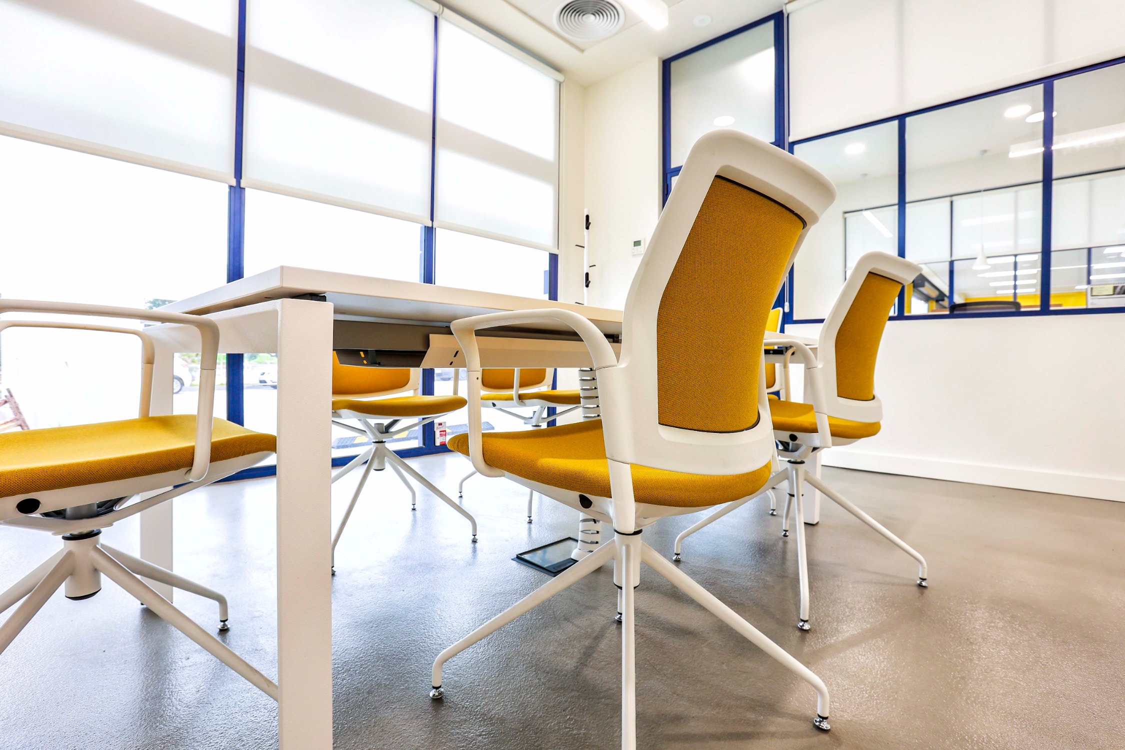 Se nos encargó también equipar la sala de reuniones que resolvimos con mobiliario de diseño que combina el máximo confort y el contrapunto de color de la silla URBAN.