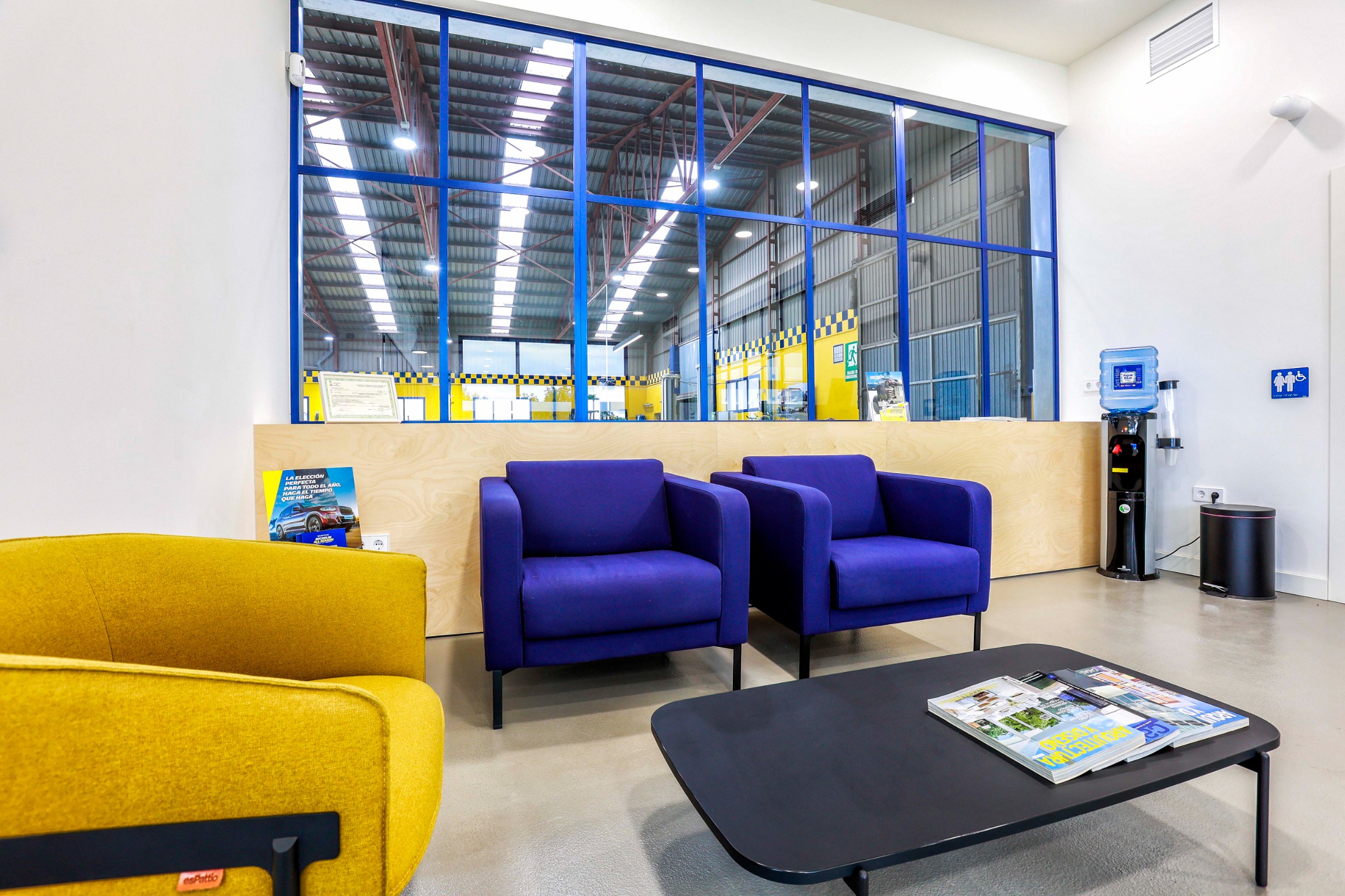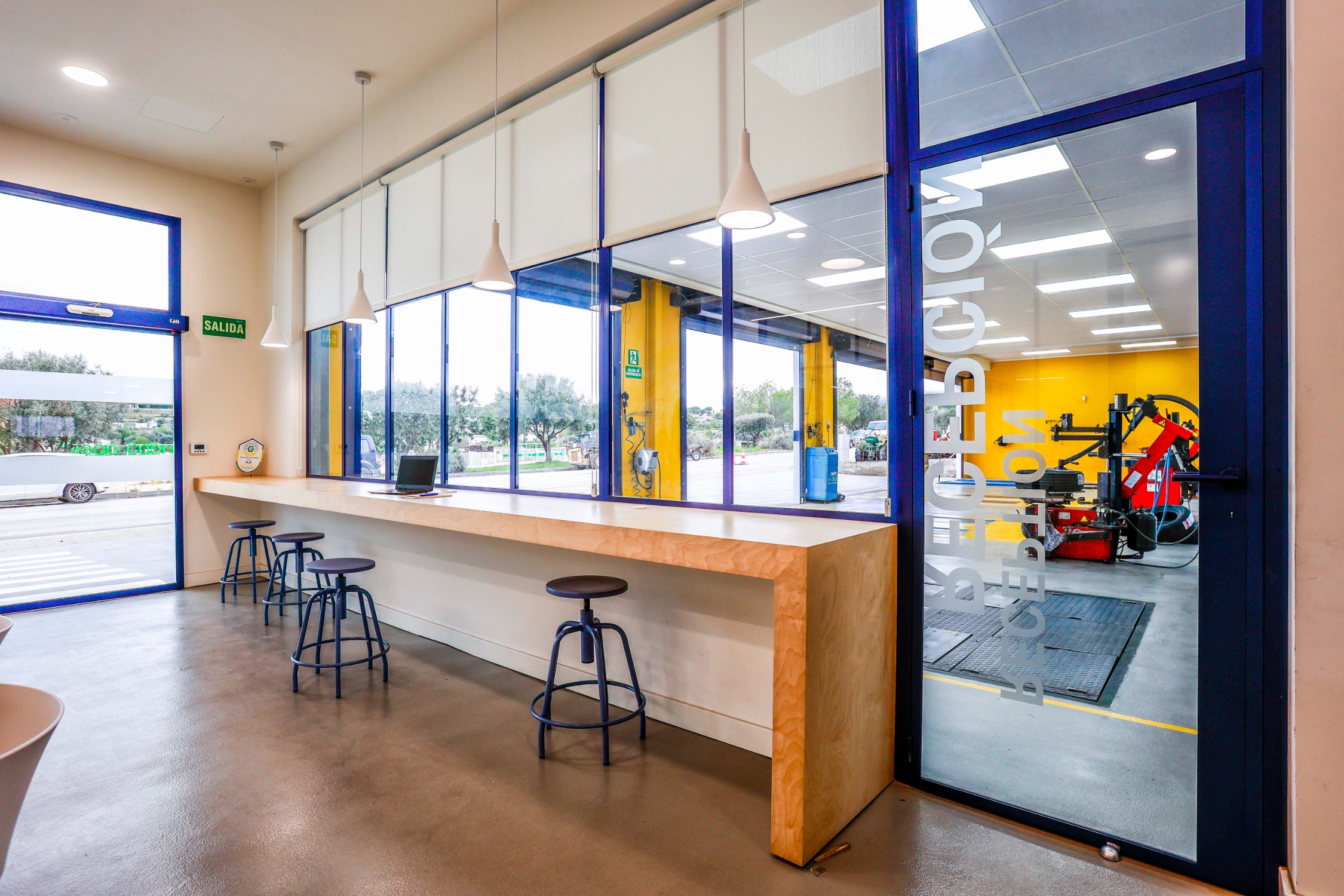 Todo el mobiliario se integró siguiendo una línea estética minimalista, respetando la paleta de colores corporativos de Euromaster Neumáticos A.G.F.